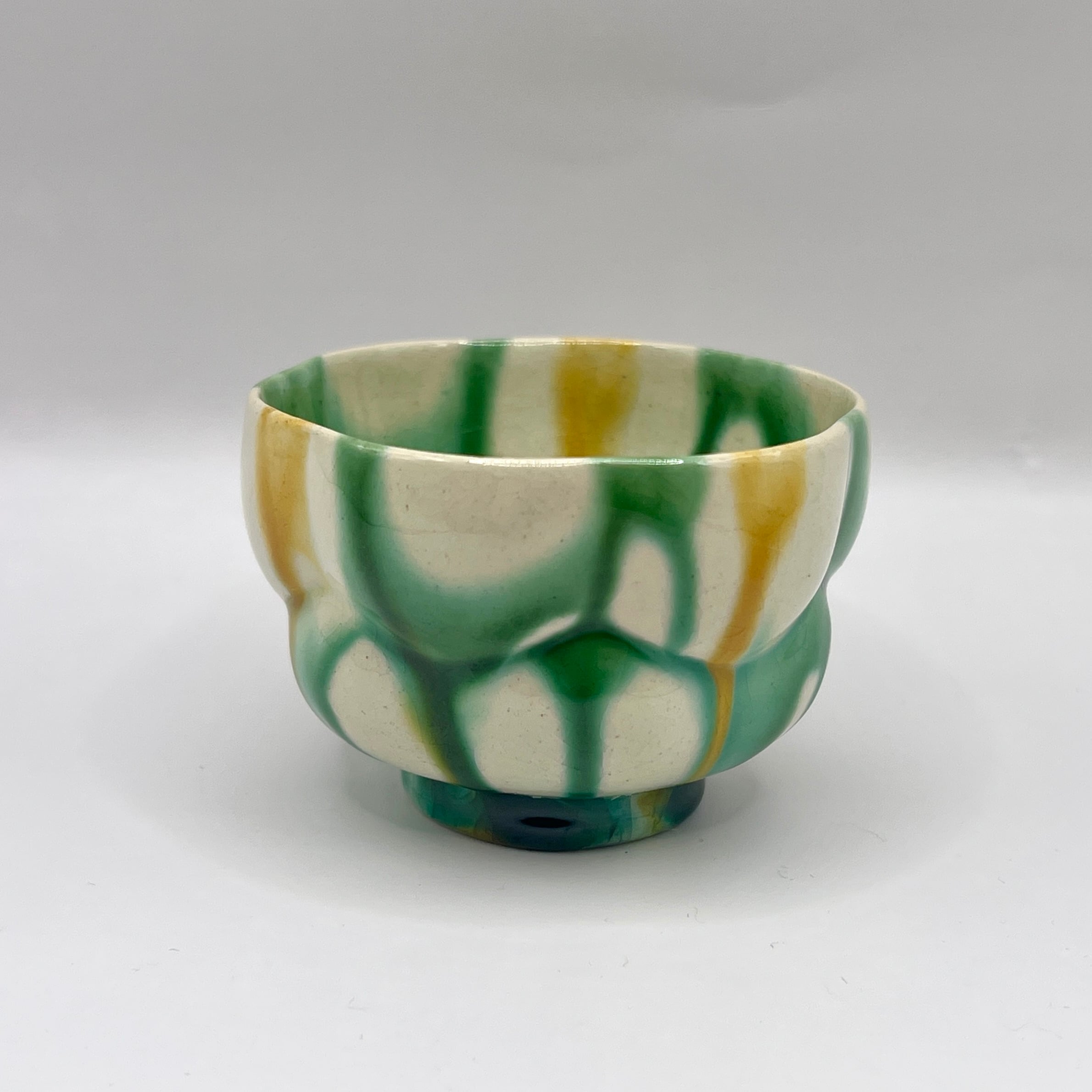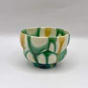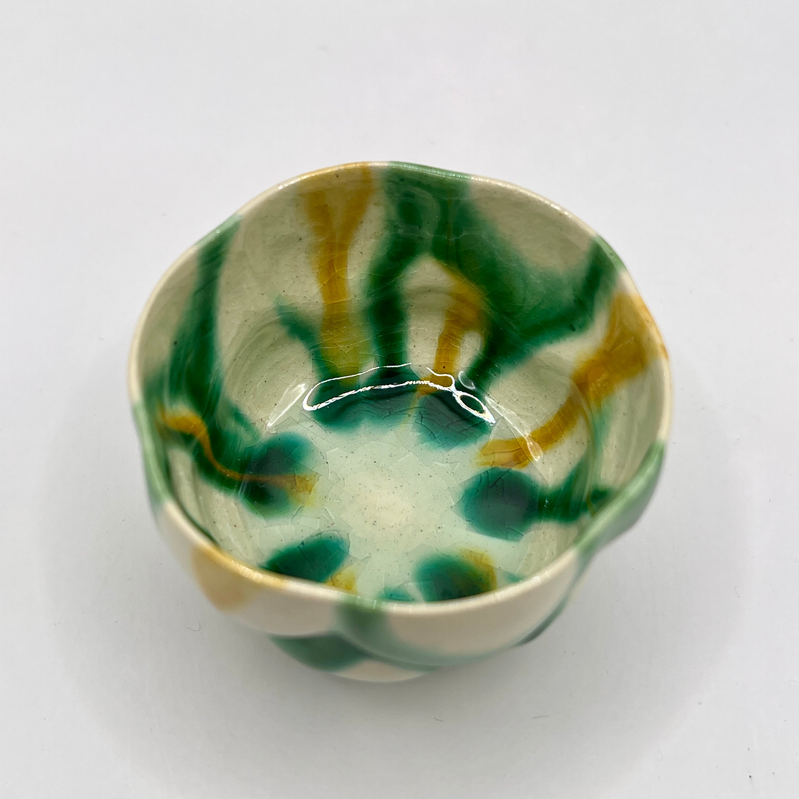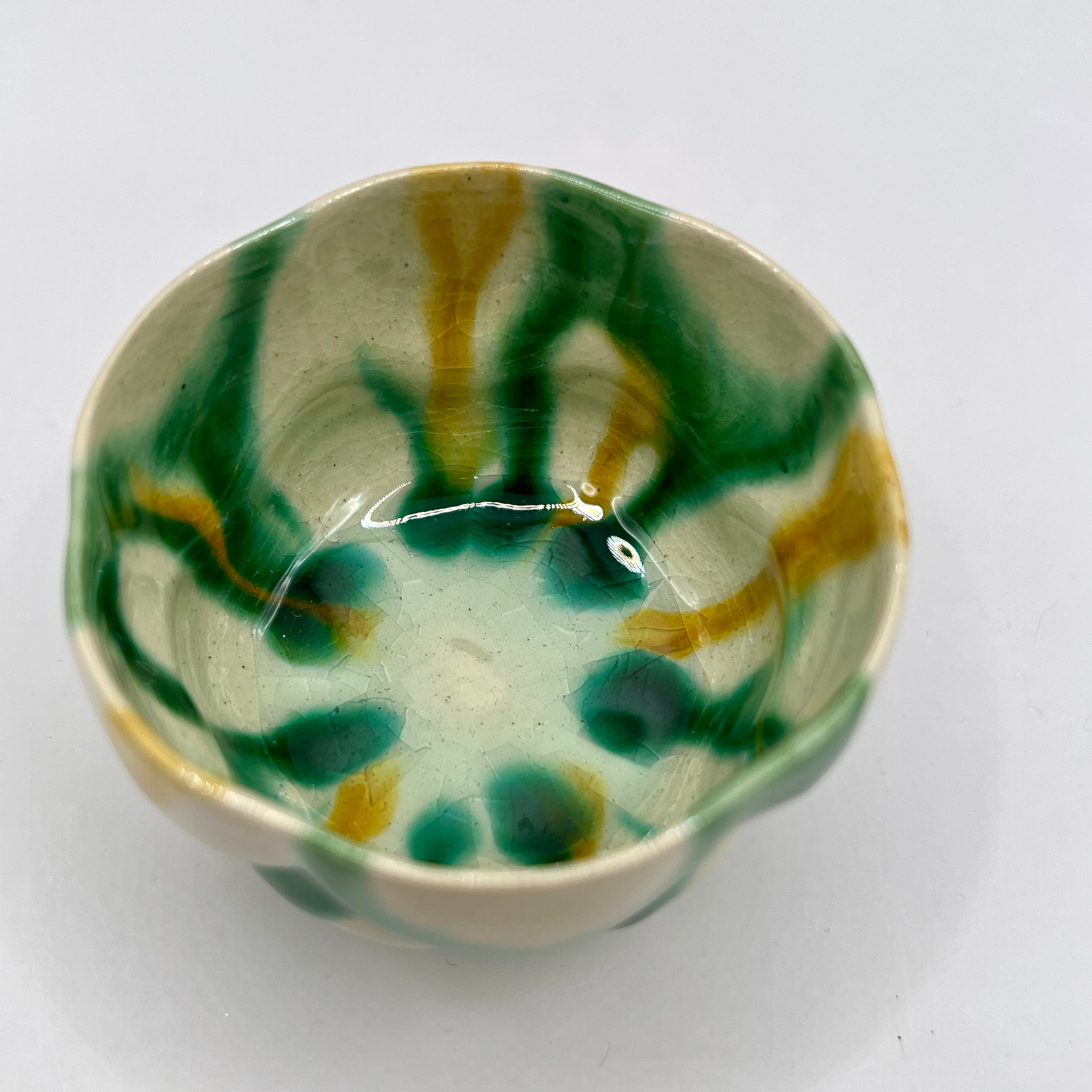 加藤卓男 三彩花形酒杯 / Takuo KATO Sansai Guinomi (Tricolored glazes Sake cup)